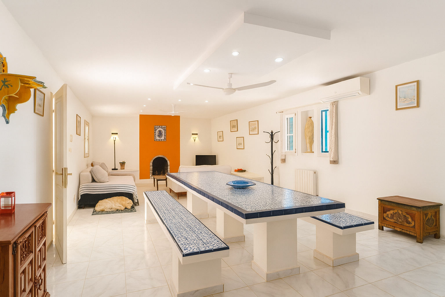 - Grand salon-salle à manger traversant avec cheminée