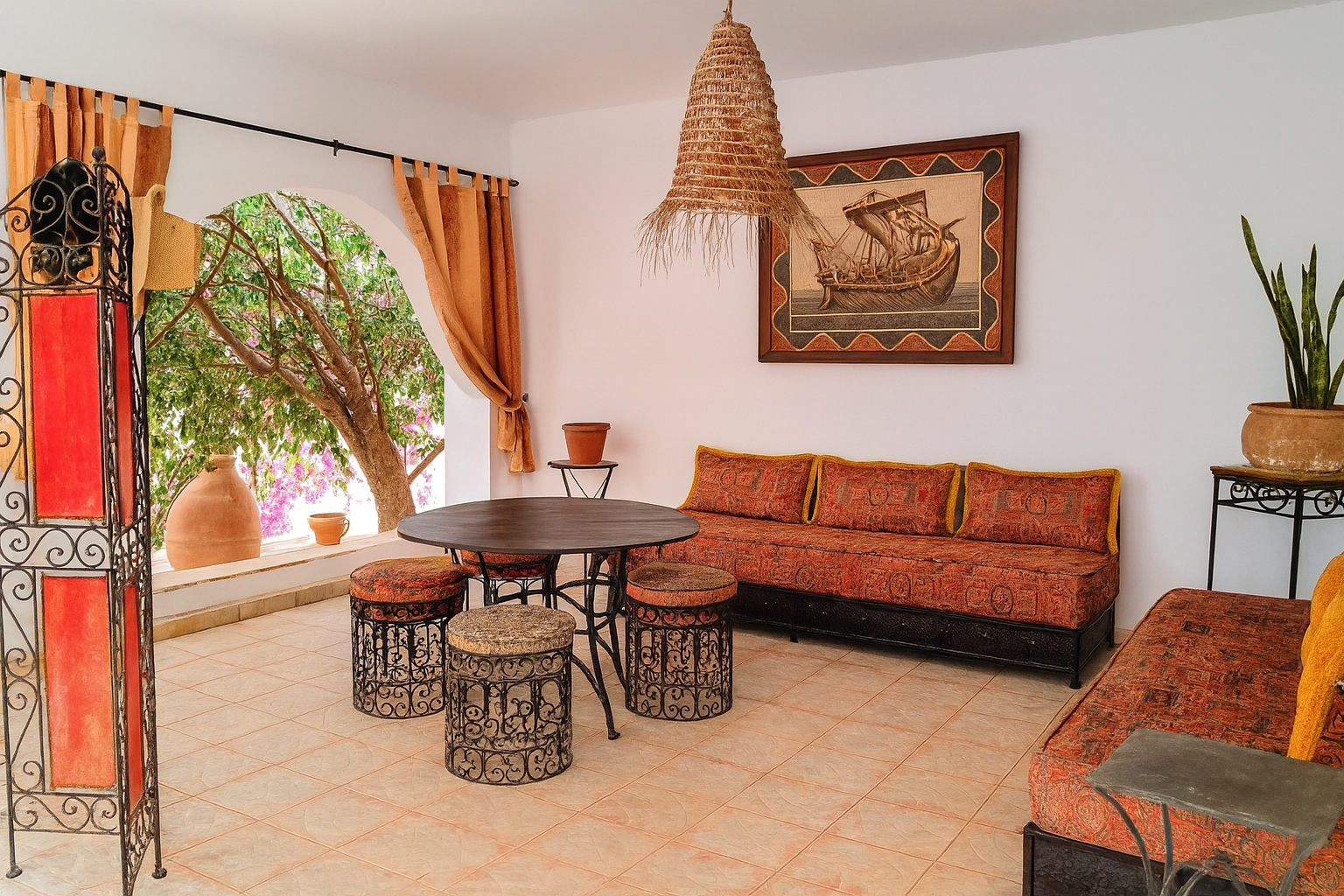 - Salons d’été bordés d’arcades au charme djerbien