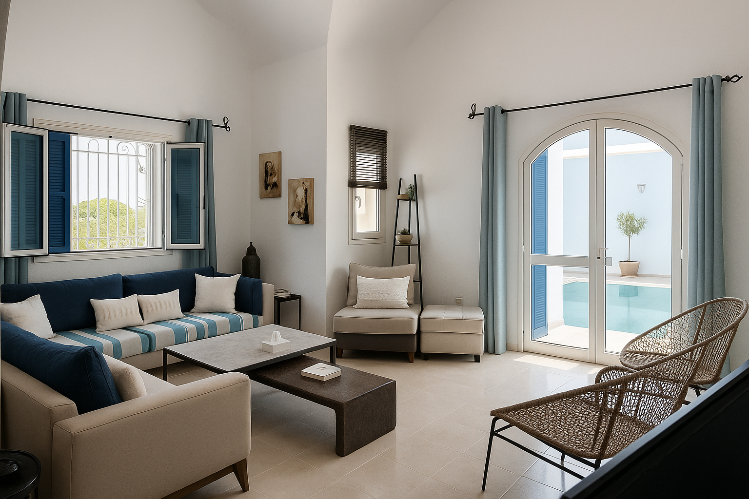 Maison typique avec piscine et vues mer en Zone Urbaine (Djerba), prête à vivre, Titre Bleu et excellent potentiel locatif. Une adresse paisible à quelques minutes du sable.